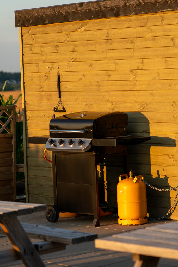 Vi har gasgrill inkl. gas, trækvogne og teqball bord som alt sammen er til fri afbenyttelse hvis du har betalt for fodboldgolf.